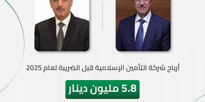 نافذة البيئة والتنمية الاخباري-حققت شركة التأمين الإسلامية نتائج مالية ممتازة في نهاية عام 2025 حيث بلغت أرباح المساهمين قبل الضريبة مبلغ 4.3 مليون دينار مقابل مبلغ 2,9 مليون دينار لعام 2024 بنسبة نمو بلغت حوالي 48%، وحققت فائض تأميني لحملة الوثائق مبلغ 1,5 مليون دينار أردني للعام 2025.