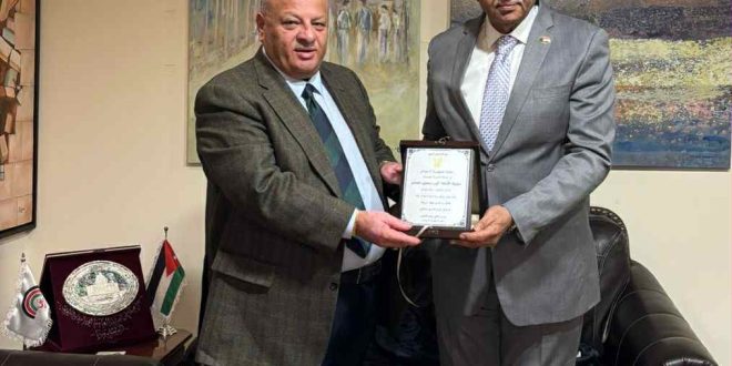 نافذة البيئة والتنمية الاخباري-استقبل المدير التنفيذي لمهرجان جرش للثقافة والفنون ايمن سماوي في مكتبه ،السفير السوداني لدى المملكة الأردنية الهاشمية السيد حسن صالح سوار الذهب،وتم خلال اللقاء بحث سبل تفعيل وتعميق التّعاون الثقافي والفني ، ومشاركة السودان ضمن فعاليات مهرجان جرش بدورته الـ 40 في جناح السفارات .